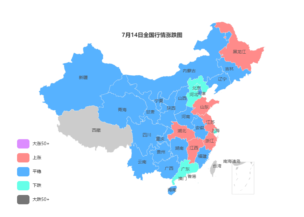 7月14日鋼鐵價(jià)格漲跌圖:穩(wěn)中漲跌 7月14日建材價(jià)格:穩(wěn)中上漲; 今建材穩(wěn)中上漲,幅度10-40,夜盤拉漲,高位成交清淡。心態(tài)方面,目前處于需求淡季,但是宏觀面持續(xù)向好,價(jià)格穩(wěn)中偏強(qiáng),貿(mào)易商心態(tài)大都謹(jǐn)慎樂觀。綜合來看,市場(chǎng)需求減弱,市場(chǎng)供應(yīng)相對(duì)應(yīng)小幅減少,預(yù)計(jì)近期價(jià)格或盤整運(yùn)行; 2 7月14日熱軋板卷價(jià)格:主流上行; 今全國熱卷主流上行,幅度20-80,市場(chǎng)高位成交乏力,多數(shù)地區(qū)已開始回調(diào),下游整體需求偏弱,商戶成交普遍清淡;