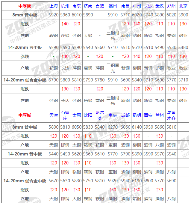 4 7月14日中厚板價(jià)格:穩(wěn)中上調(diào); 今全國中厚板價(jià)格穩(wěn)中上調(diào),幅度10-50左右,期鋼大幅走高,商家趁勢(shì)積極出貨為主,高位成交一般,低位尚可,考慮成本支撐,預(yù)計(jì)短期隨形整理;