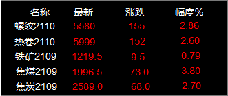 昨日黑色系大宗商品期貨價格全線飄紅,市場資金充裕,期螺開盤后震蕩,午后多頭發力走高,增倉上行,成交有所放量,最終期螺期卷漲近3%,原料方面,雙焦如期走強,鐵礦也緊跟拉漲。雙焦開啟四連陽,期螺上漲155收報5580,期卷上漲152收報5999,鐵礦石上漲9.5收報1219.5,焦煤上漲73收報1996.5,焦炭上漲68收報2589。唐山鋼坯昨日上調20元,今上午又上調20元,現報5140元/噸。網優廢鋼統計14日30漲7跌,今早35漲3跌。