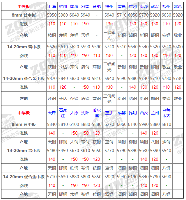 7月15日中厚板價格:上行為主;