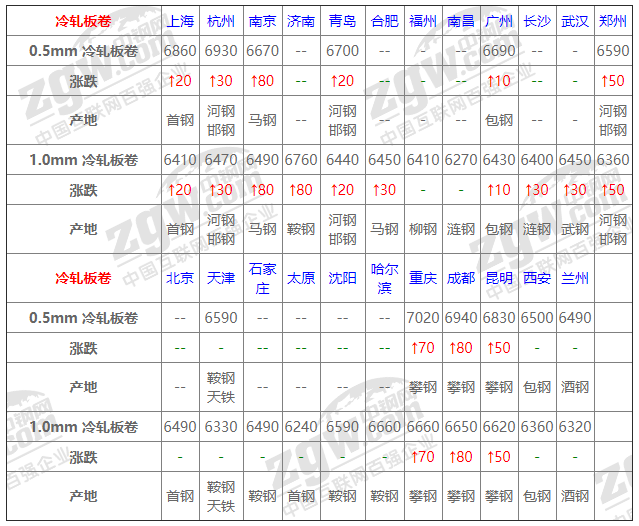 今全國冷軋穩(wěn)中調整,幅度20-80,伴隨前期一直拉漲的氣氛,今日全國冷軋仍偏強調整為主,但市場應出貨情況不是非常樂觀,都以觀望為主;