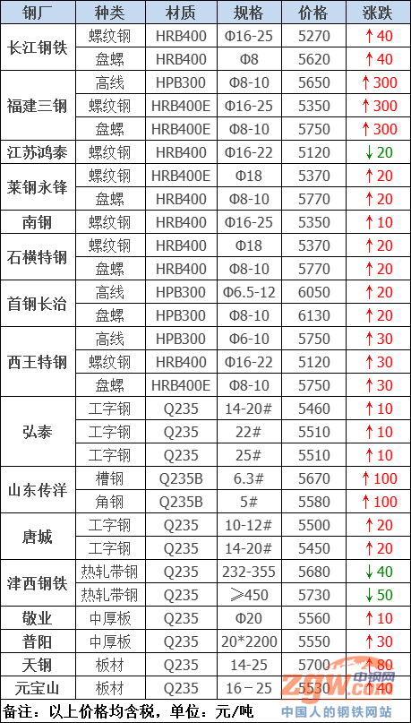 2021年7月16日鋼廠調價通知::調價:漲300!跌40!23家鋼廠最新調價來了!