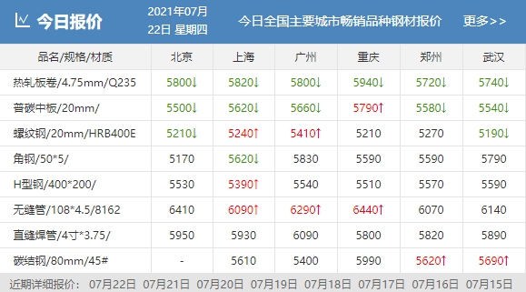 中央氣象臺7月22日繼續發布暴雨黃色預警:預計7月22日08時至23日08時,河北西南部、河南西北部、廣西南部、廣東雷州半島、海南島西北部、云南南部、浙江中北部沿海、臺灣島中北部等地的部分地區有大到暴雨,此次暴雨主要集中在華北和華東沿海區域,下游開工將受到影響,采購相對謹慎,成交繼續偏弱,鋼價上行仍有阻力。