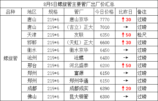 【鋼廠重磅】8月6號鋼廠部分產品出廠價格及鋼廠廢鋼價格調整信息