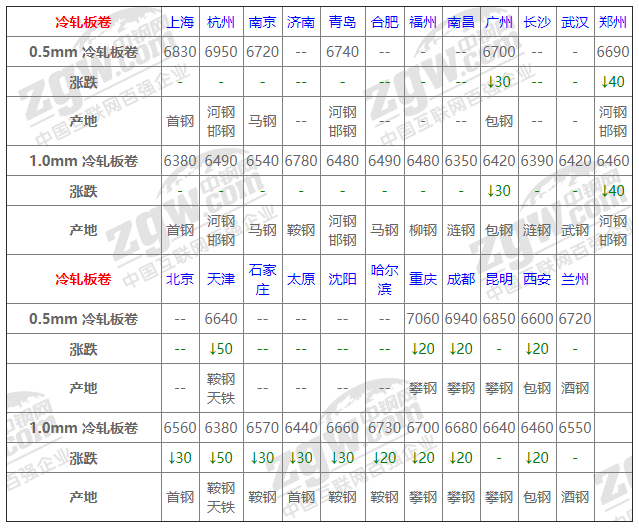 8月6日冷軋板卷價格:偏弱運行;