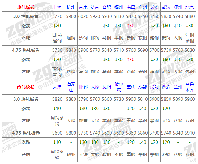 8月6日熱軋板卷價格:下行為主;