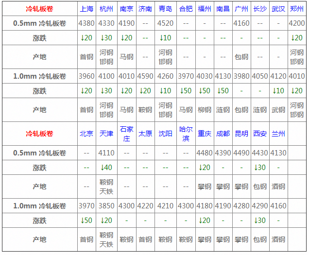 3月26日冷軋板卷價格:弱勢難改;