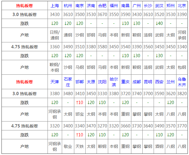 3月26日熱軋板卷價格:主流下行;