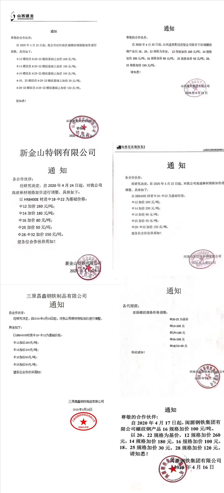 以上調(diào)整均為過磅含稅,執(zhí)行日期2020年4月24日