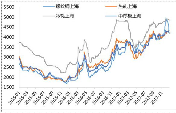 2017年11月底以來,原材料市場在市場參與者普遍看空的預(yù)期下不降反升。12月份,不管是煉焦煤、焦炭、鐵合金,還是鐵礦石,其表現(xiàn)均比鋼材要強(qiáng)。由于鋼廠原材料采購和鋼材銷售之間通常有1個(gè)月左右的時(shí)間差,2017年12月份原材料價(jià)格的上升將使鋼材的生產(chǎn)成本上升,對鋼價(jià)的支撐力度也相應(yīng)上升。