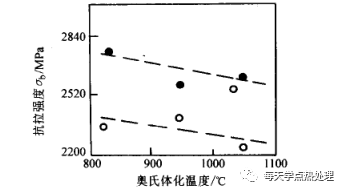 ▲圖3 40CrNiMo鋼奧氏體化溫度對低溫形變淬火抗拉強度的影響