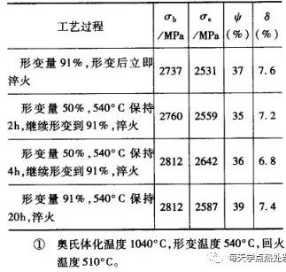 如果奧氏體穩定性高,鋼在奧氏體化后冷卻到形變溫度并保持一段時間奧氏體不發生分解,則形變前的這段停留對低溫形變淬火后的性能沒有影響。