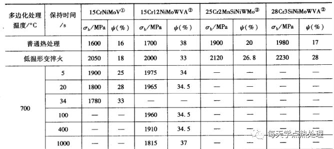 ▼表3 多角化處理溫度和時間對幾種鋼低溫形變淬火后性能的影響