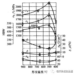 圖6表示了形變溫度對30CrNiMo鋼力學性能的影響。