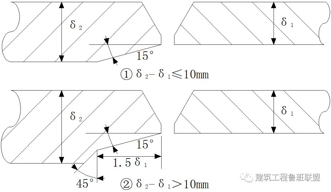 內(nèi)壁錯邊量不宜超過壁厚的10%,且≯2mm;外壁錯邊量≯3mm。