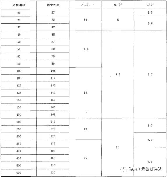 鋼管滾槽、開槽基本尺寸及偏差表