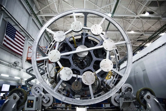 另一個令人印象深刻的設計是Octaweb結構。它是承受機械載荷的主要結構,位于獵鷹9號火箭的底部。這種結構載有9個引擎的陣列,通過提供一個保護空間來保護每個引擎不受其他引擎的影響。Octaweb是由高強度鋁7000系列材料制成的,并采用螺栓固定。與以前的焊接結構相比,這使得火箭的翻新變得容易且快速。