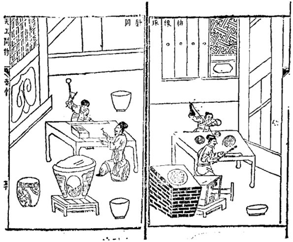 明代宋應星在《天工開物》卷十中談到過一種制針的滲碳工藝是:先用冷拔、剪切等方式把“熟鐵”制成針的雛形,然后把針坯“入釜慢火炒熬,炒后以土末入松木、火矢、豆豉三物罨(yǎn)蓋,下用火蒸,留針二三口,插于其外,以試火候。其外針入手捻成粉碎,則卜針火候皆足,然后開封入水健之”。